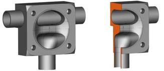 The complete drainability is an important consideration for the design of multiport valves. The following illustration shows the correct and incorrect installation of a standard T-valve: